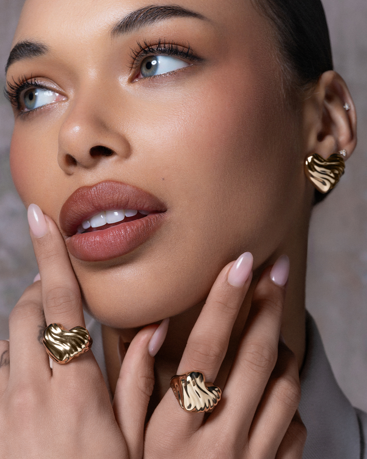 Kolekcija Bold Heart slavi moč in ženstvenost z ikoničnimi oblikami in živahnimi teksturami. Izklesana srca z valovitimi teksturami, naravni kamni in svetleči detajli se zlivajo v sodoben dizajn z drznim, a romantičnim značajem. Vsak kos je izdelan iz visokokakovostne kovine, prevlečen z 18-karatnim rumenim zlatom ali rodijem in v celoti izdelan v Italiji. Linija, zasnovana za tiste, ki radi izstopajo s stilom in vsak dan nosijo svojo drzno energijo.
