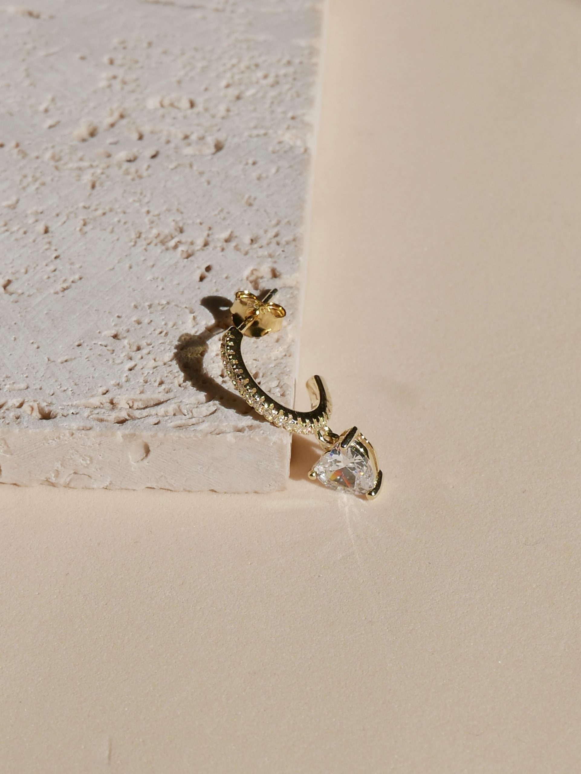 Mono uhan Sim Pop – Rinka s cirkoni in srčkom – rumena