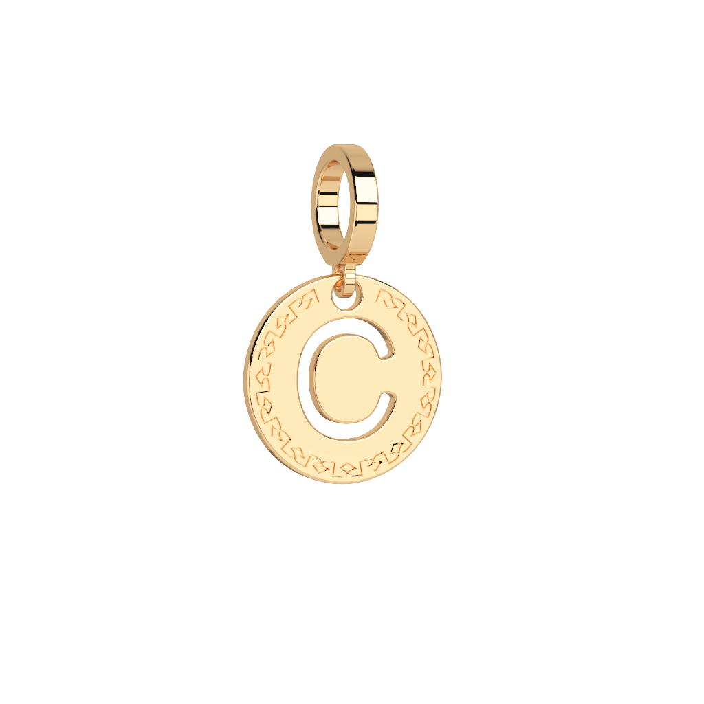 Obesek črka C v medaljončku rumen – ⌀ 12 mm