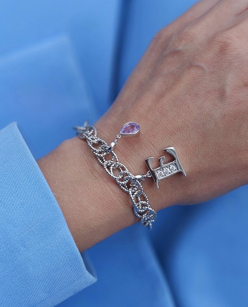 Obesek solzica z lila kamnom