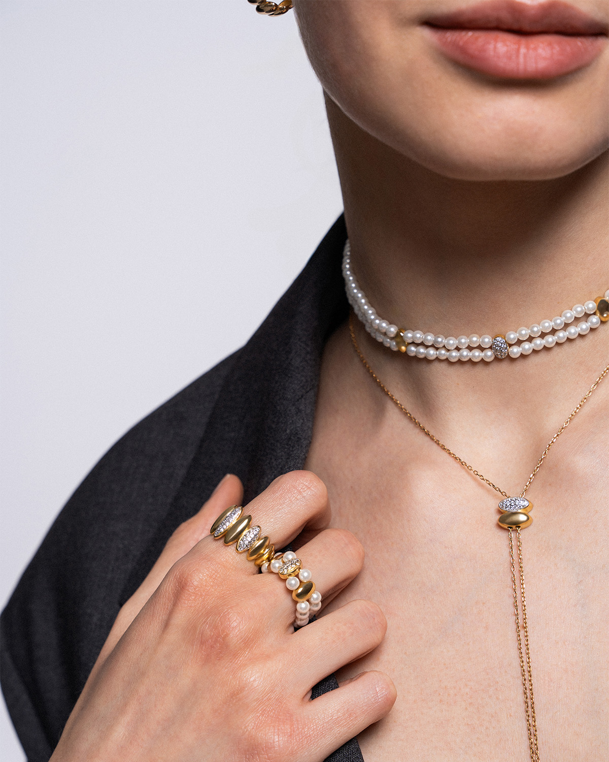 Eclissi – Prstan s perlicami in cirkoni – rumen